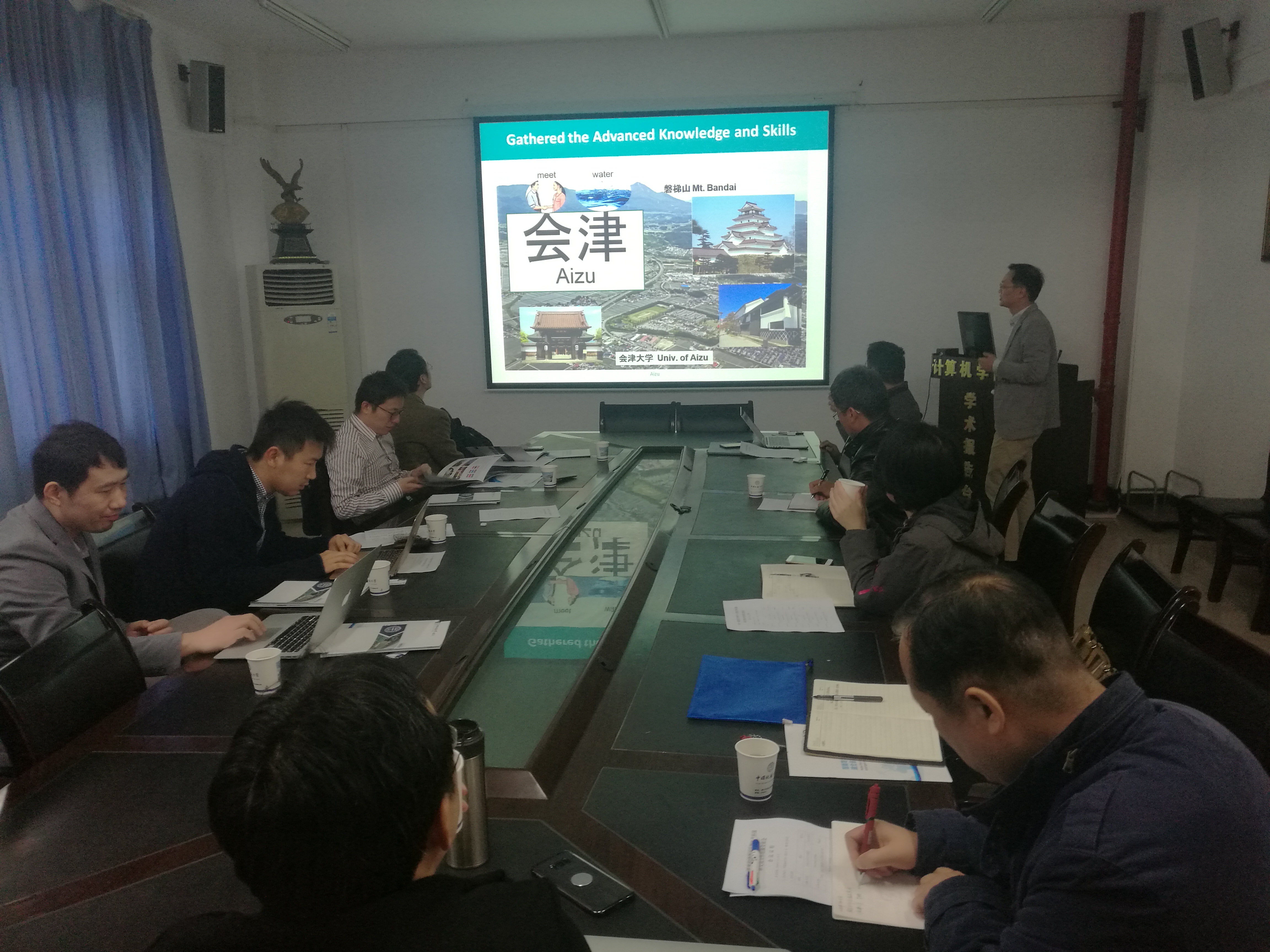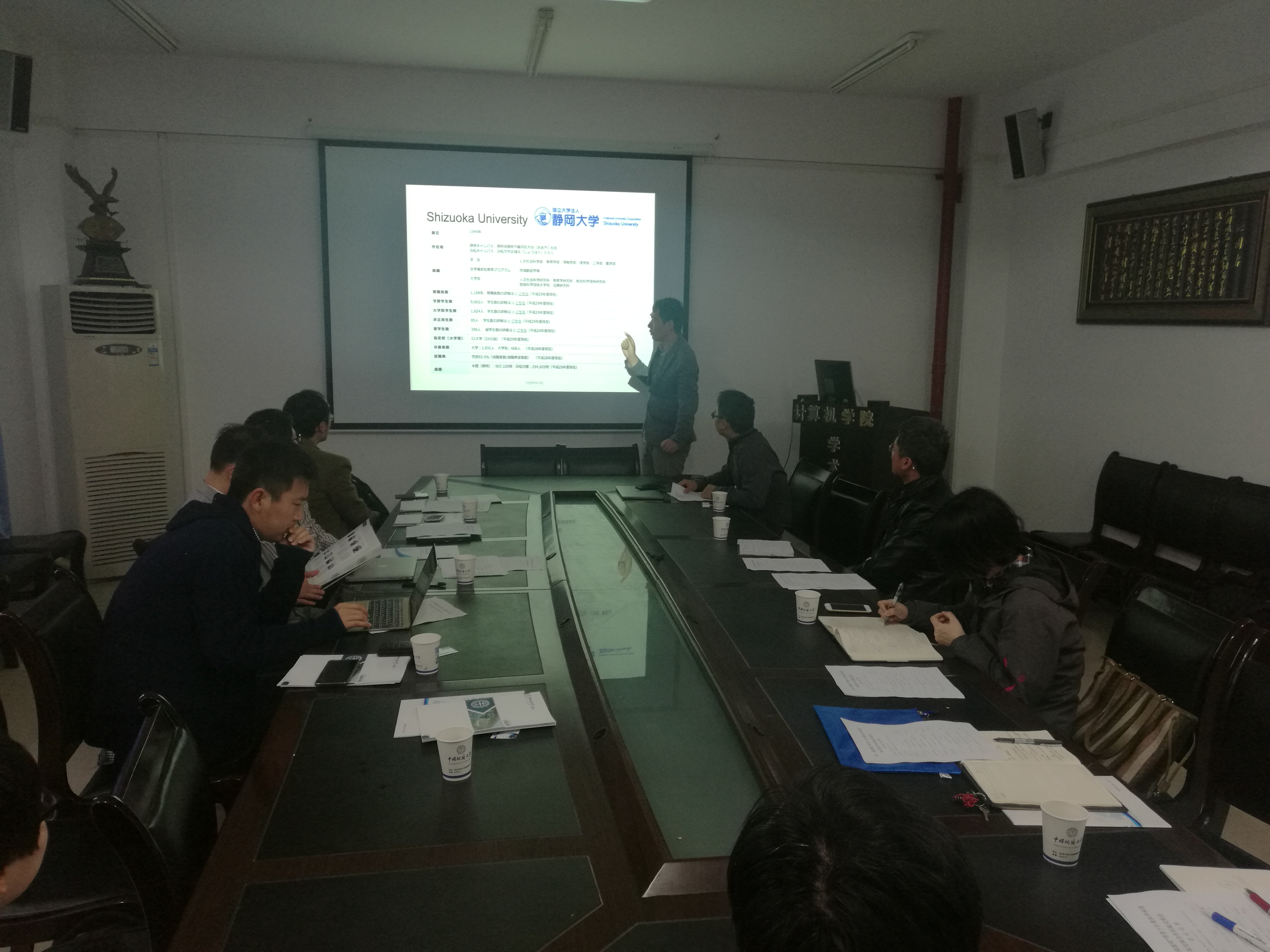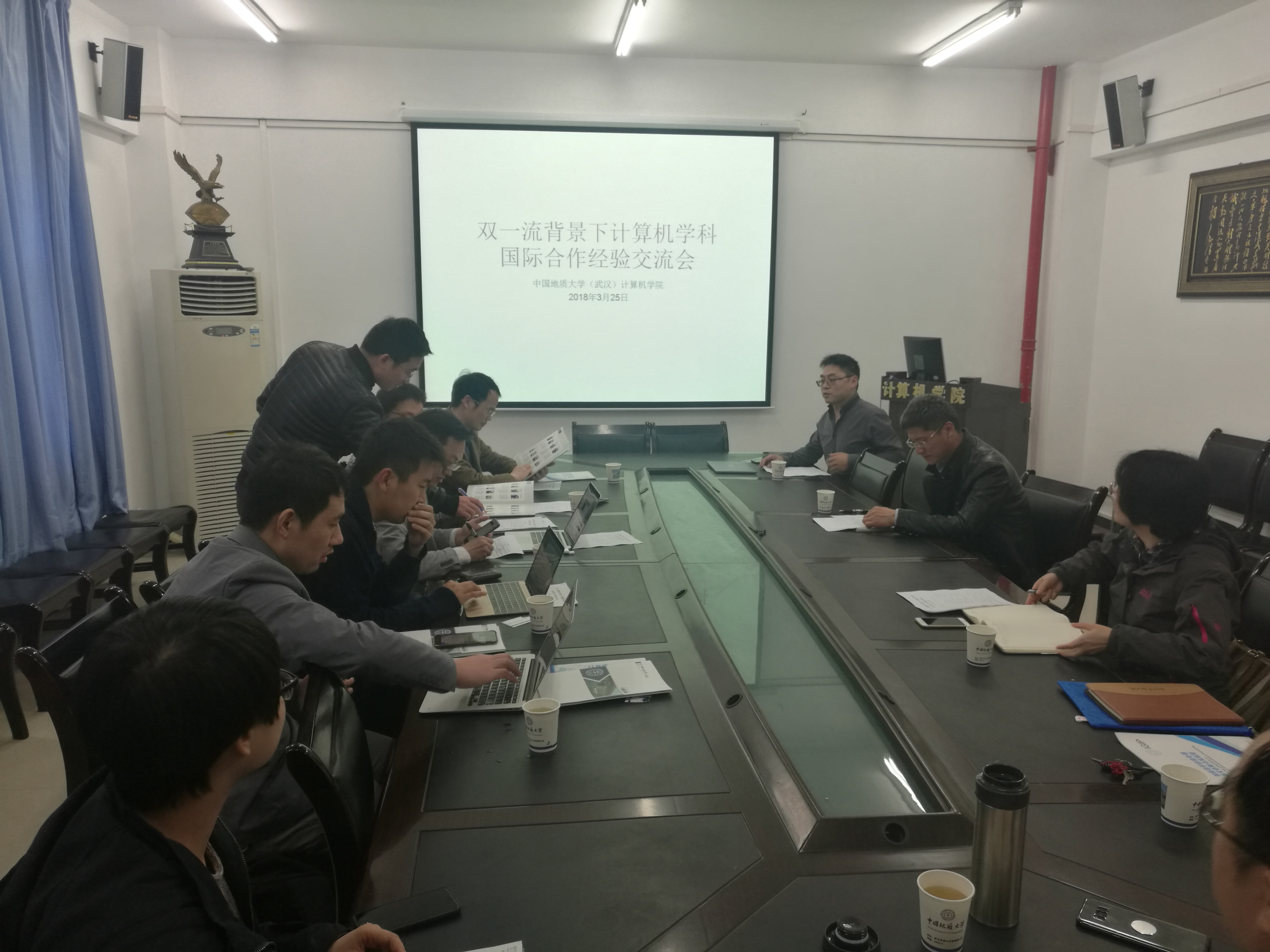 (通讯员:石剑峰)2018年3月25日。“双一流建设”背景下计算机学科国际交流合作经验交流会在公司北一楼会议室胜利召开。会议由公司网络工程系主任曾德泽主持。公司王力哲经理、张冬梅副经理、各系主任和来自日本的会津大学李鹏老师、静冈大学刘志老师、茨城大学王潇岩老师及来自我国南京信息工程大学付章杰老师、香港理工大学王堃老师参会。