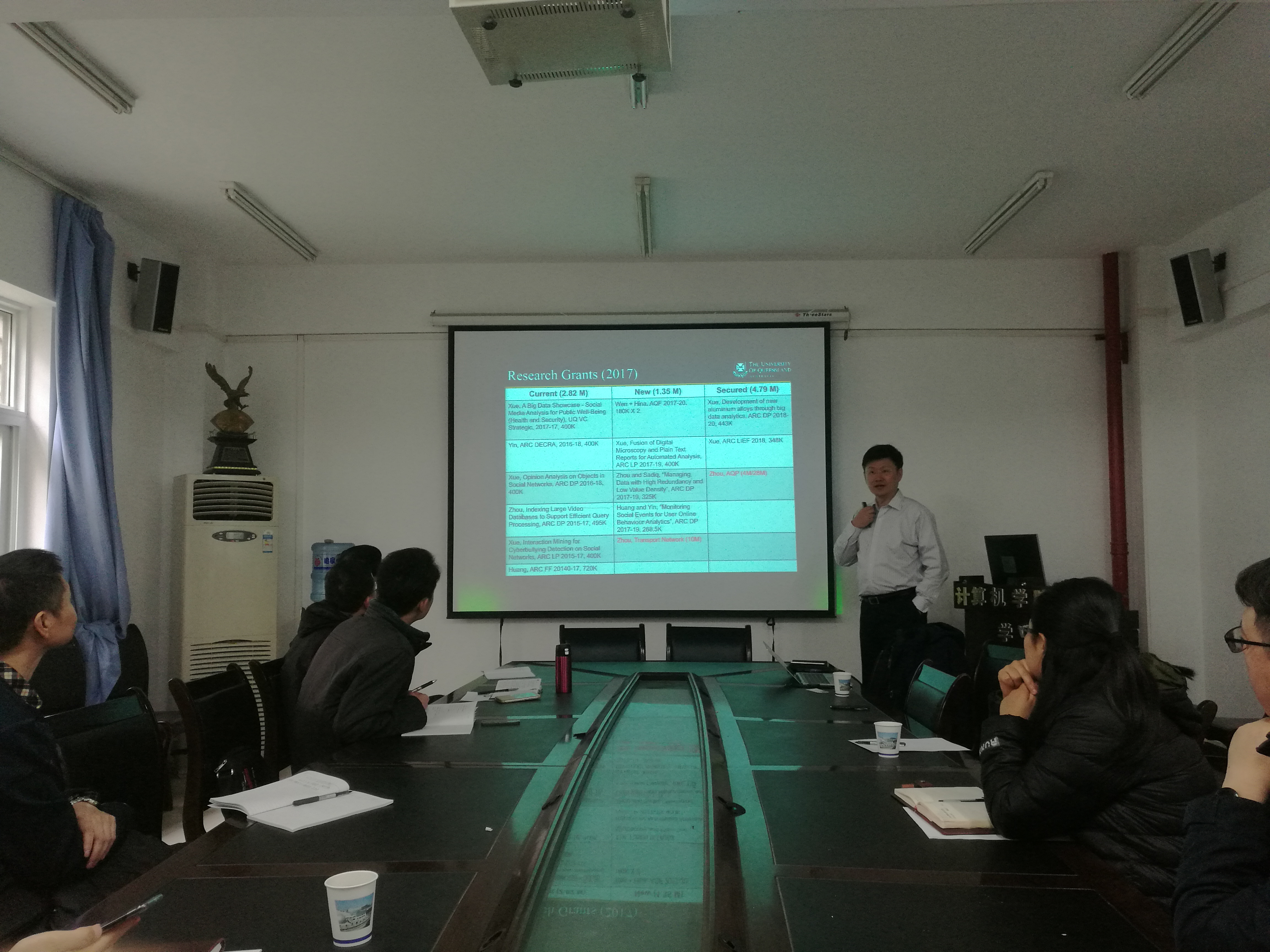 下午周晓方教授带来了一场题为《Managing the Next Generation of Data》的学术报告。周晓方,博士,昆士兰大学信息技术与电气工程公司教授、数据与知识工程研究室主任、入选国家级人才计划。周晓方教授长期从事数据库系统和信息系统研究,主要研究领域包括空间数据库,多媒体数据库,数据质量及高性能数据处理等。担任我国“863”主题项目《开放环境下海量Web数据提取集成分析和管理系统平台与应用》首席科学家。并担任过VLDB Journal, IEEE Transactions on Knowledge and Data Engineering,IEEE Transactions on Cloud Computing和World Wide Web Journal等国际一流学术期刊的编委,IEEE数据工程执行委员会主席。