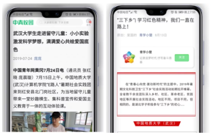 “计科先锋宣讲团”实践过程先后被国家级媒体报道3次(光明日报网、先驱日报网、现代青年网),县级媒体报道2次(红安热线、红安县校办),校级媒体报道8次(地大新闻网、CUG科协、老员工网报),共计13次,不含重复报道。