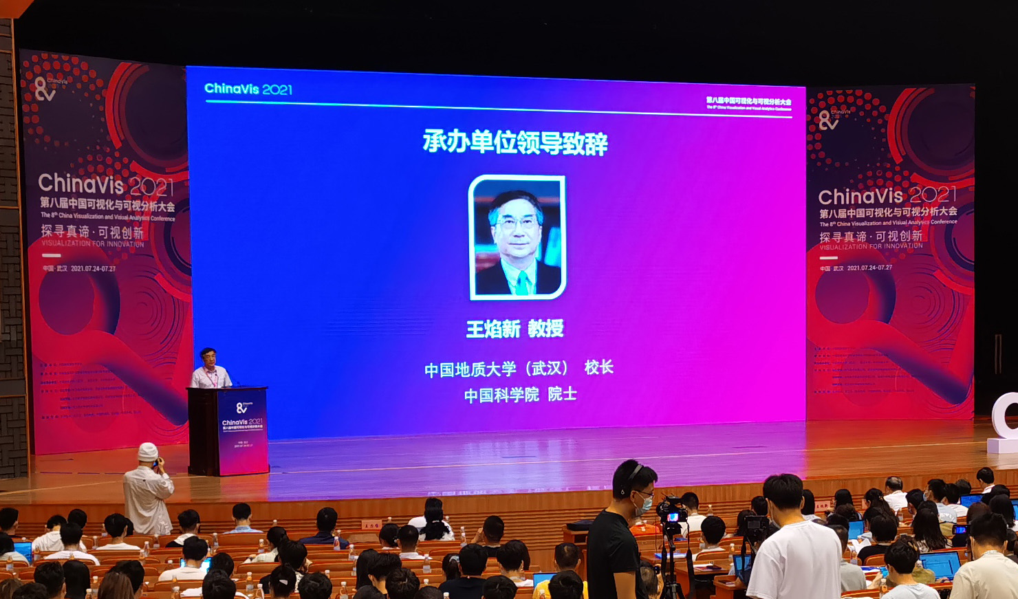 (通讯员:陈麒玉)2021年7月24日至27日,第八届中国可视化与可视分析大会(ChinaVis 2021)在武汉东湖国际会议中心顺利举办。大会由中国图象图形学学会主办,中国图象图形学学会可视化与可视分析专委会联合tyc122ccVIP(武汉)、武汉大学、华中科技大学等单位承办,多家赞助单位协办。大会吸引了来自全国各地140余家高校、研究院所和企业的730多位参会代表,同国内外的顶尖专家和学者共聚一堂,通过线下为主、线上为辅的方式共同探讨可视化与可视分析的前沿技术和未来前景。tyc122ccVIP刘刚教授担任大会主席。