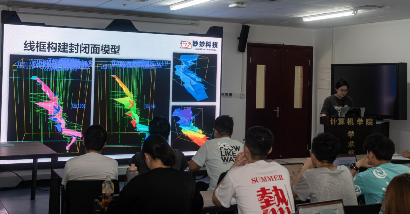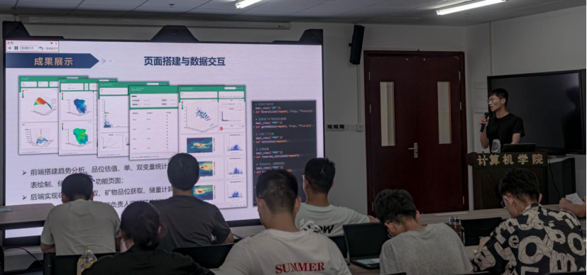 “恰同学少年,风华正茂”。在实习过程中,同学们创立了“未来”、“妙妙”、“尤里卡”、“海克斯”等四个“科技公司”团队,大家撸起袖子加油干,将青春的热情和扎实的专业技能倾注到这一场充满挑战的应用软件开发实践中。同学们不仅圆满完成了合同要求的任务,而且发挥青春的能动力和创造力从算法、数据存储、系统架构、项目管理等多个方面谋求创新,实现了新型地质体三维自动建模算法、Mongo DB分布式文件系统的地学应用、矿山实景VR展示、C/S与B/S混合架构数字矿山系统搭建等多种先进技术理念的实验与应用,在进一步夯实专业知识的同时,对于领域的前沿技术进行了一次全面实践。