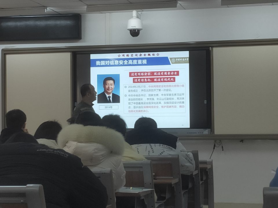 宋军老师在讲授“网络空间安全概论”时,通过丰富的案例揭示了当前国内外网络安全形势的严峻复杂性,教育信息安全的员工牢记习近平总书记关于“没有网络安全就没有国家安全”的重要论述,牢固树立总体国家安全观,遵守职业道德,树立爱国爱家的信念,不该看的不看,不该说的不说,不该传的不传,以实际行动守护网络安全。宋老师的洪亮声音和激情演讲,迅速点燃了同学们学习的热情。