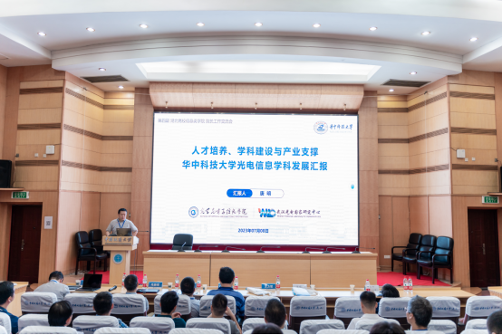 华中科技大学光学与电子信息公司副经理唐明作报告