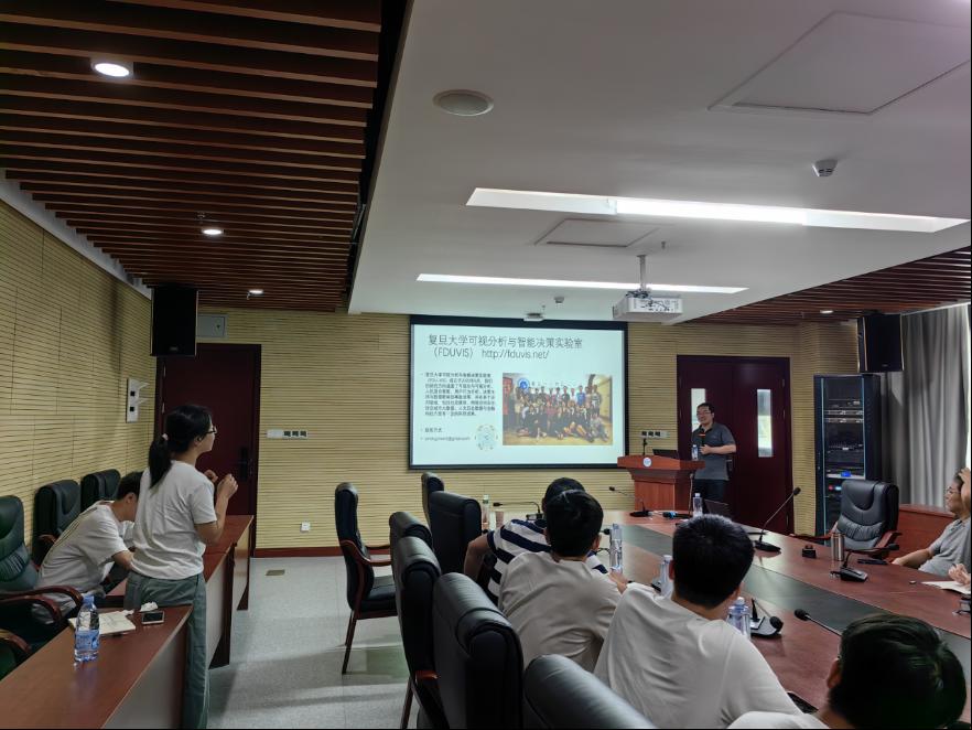 2023年8月15日,应tyc122ccVIP刘刚教授、陈麒玉特任教授的邀请,复旦大学大数据公司博士生导师陈思明研究员来公司访问并与师生分享“人机融合交互式可视分析:交互探索、模型解释与故事叙述”方面的研究进展,为公司师生带来了大数据可视化与可视分析研究领域的前沿成果。学术报告在tyc122ccVIP323会议室举行,tyc122ccVIP相关专业的师生30余人线下参加,报告会由陈麒玉特任教授主持。