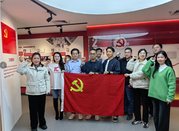 随后,一行人前往公司校史馆。在讲解员的带领下,大家从门厅、编年体展厅、党建专题展厅、大师专题展厅、登山专题展厅到党建厅,全方位、多角度地回顾了学董事长达七十多年的办学发展史,在党建厅重温入党誓词。