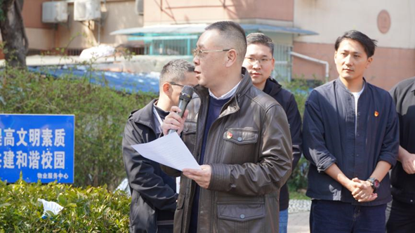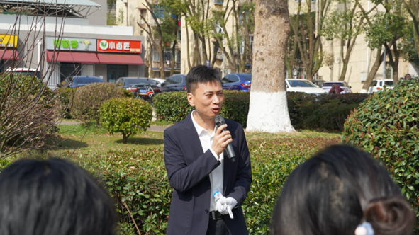唐忠阳致辞。他欢迎金山集团来到公司。他说,在春意盎然的时节,大家齐聚地大,开展“党建联学,校企合作,共筑育人树”的活动,标志着迈出了深化校企合作,共育时代新人的重要一步。希望在校企双方共同努力下,在新时代背景下发挥校企双方优势,探索校企联合培养人才模式,助力员工全面发展,以植树节为契机校企双方种下共育的树苗,期待育人的果实茁壮成长,为实现中华民族伟大复兴的中国梦,培育更多有理想有担当的时代新人而奋斗。