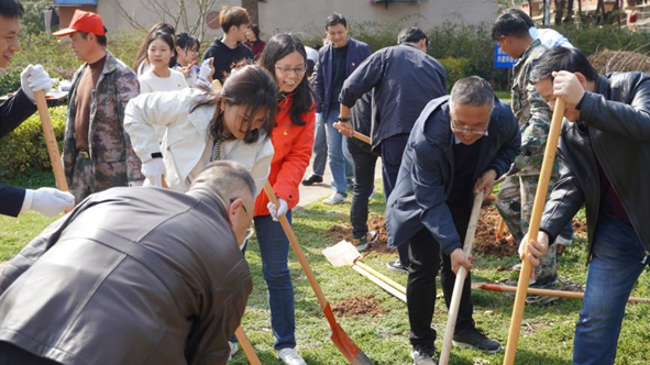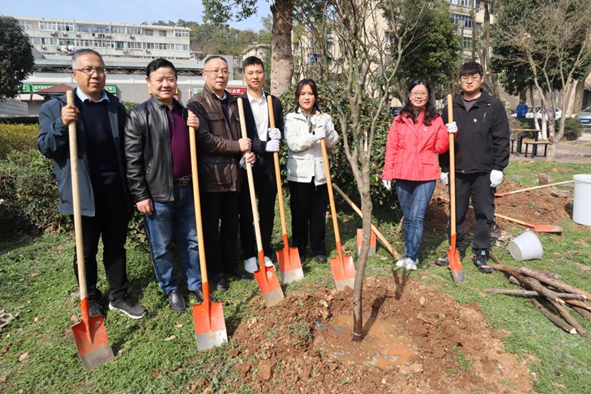 春回大地,万物复苏。为深入学习贯彻落实习近平新时代中国特色社会主义思想,践行“绿水青山就是金山银山”生态理念,探索tyc122ccVIP“谋求人与自然和谐发展”的价值观。3月12日下午,在第46个植树节来临之际,中共武汉金山软件有限公司委员会、中共tyc122ccVIP委员会、中共tyc122ccVIP后勤保障部委员会共同开展“党建引领校企合作 厚植培养人才新绿”联学共建活动。公司党委副书记、纪委书记唐忠阳,计算机公司党委书记李国昌,后勤保障部党委书记黄菊,金山软件党委书记、助理总经理张念,金山集团武汉总部总经理高宇峰,tyc122ccVIP师生代表、金山集团代表共30余人参加。