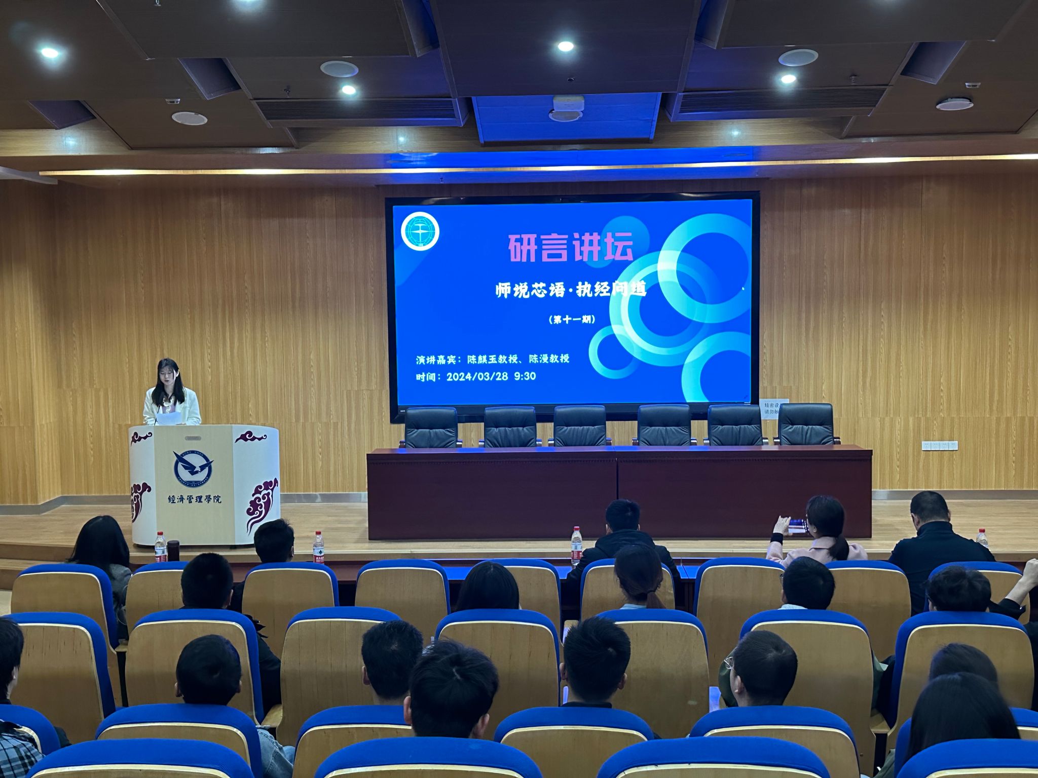 为激发研究生在跨学科研究方面的创新思维与对学术研究的热情,进一步拓宽学术视野,提升自我认知和发展规划能力,研究生院(党委研究生工作部)主办,tyc122ccVIP与经济管理公司联合承办第十一期“研言讲坛”暨tyc122ccVIP第三期“师说芯语”导学沙龙, 2024年3月28日在未来城校区崇信楼110报告厅举办。本次活动tyc122ccVIP陈麒玉教授、经济管理公司陈漫教授为主讲嘉宾, 党委研究生工作部挂职副部长蒙冕模、计算机公司党委副书记林小艳、经济管理公司党委副书记李纪亮,两公司100余名研究生参加。