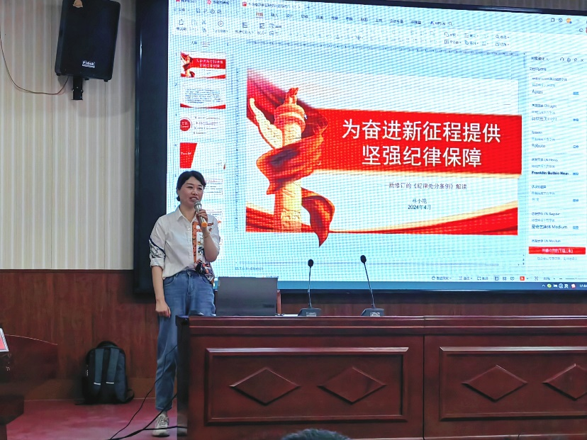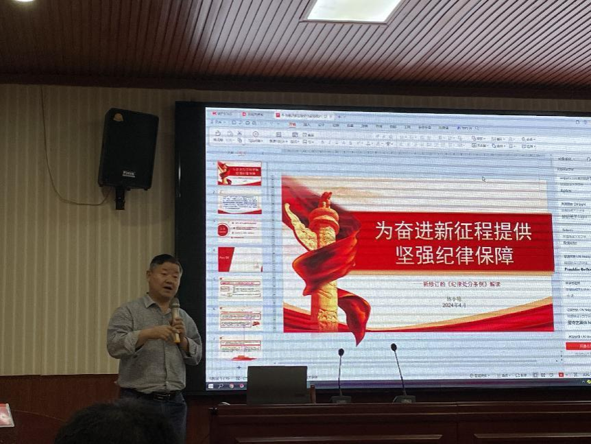 林小艳认为,贯彻执行新修订的党纪处分条例要真抓实干、善作善成。党员干部要切实担负起全面从严治党的政治责任,以身作则,坚决杜绝违规违纪踩“红线”、越“底线”、闯“雷区"的行为。她结合科研经费违规使用、教师学术不端、把关员工不严等案例,重点解读了与高校教师党员密切相关的条例内容,以案明纪,以案示警。