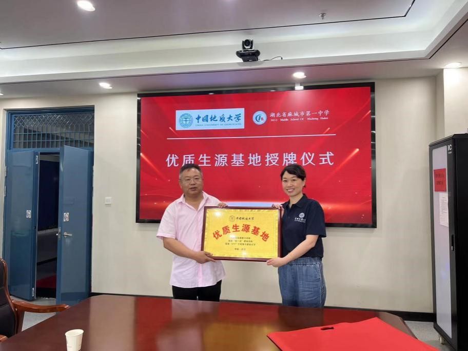 5月21日上午,公司党委副书记林小艳、信息安全系党支部书记马钊、空间信息与数字技术专业教师汪校锋、团委副书记闫维蓉、2023级本科生冯仕杰一行赴麻城一中开展招生宣传,并举行“优质生源基地”授牌仪式。麻城一中董事长吴宏文、副董事长曾黎星以及党建办主任李国庆,政教主任、高三年级主任王辉,高三年级副主任胡欣及部分高三班主任参加活动。