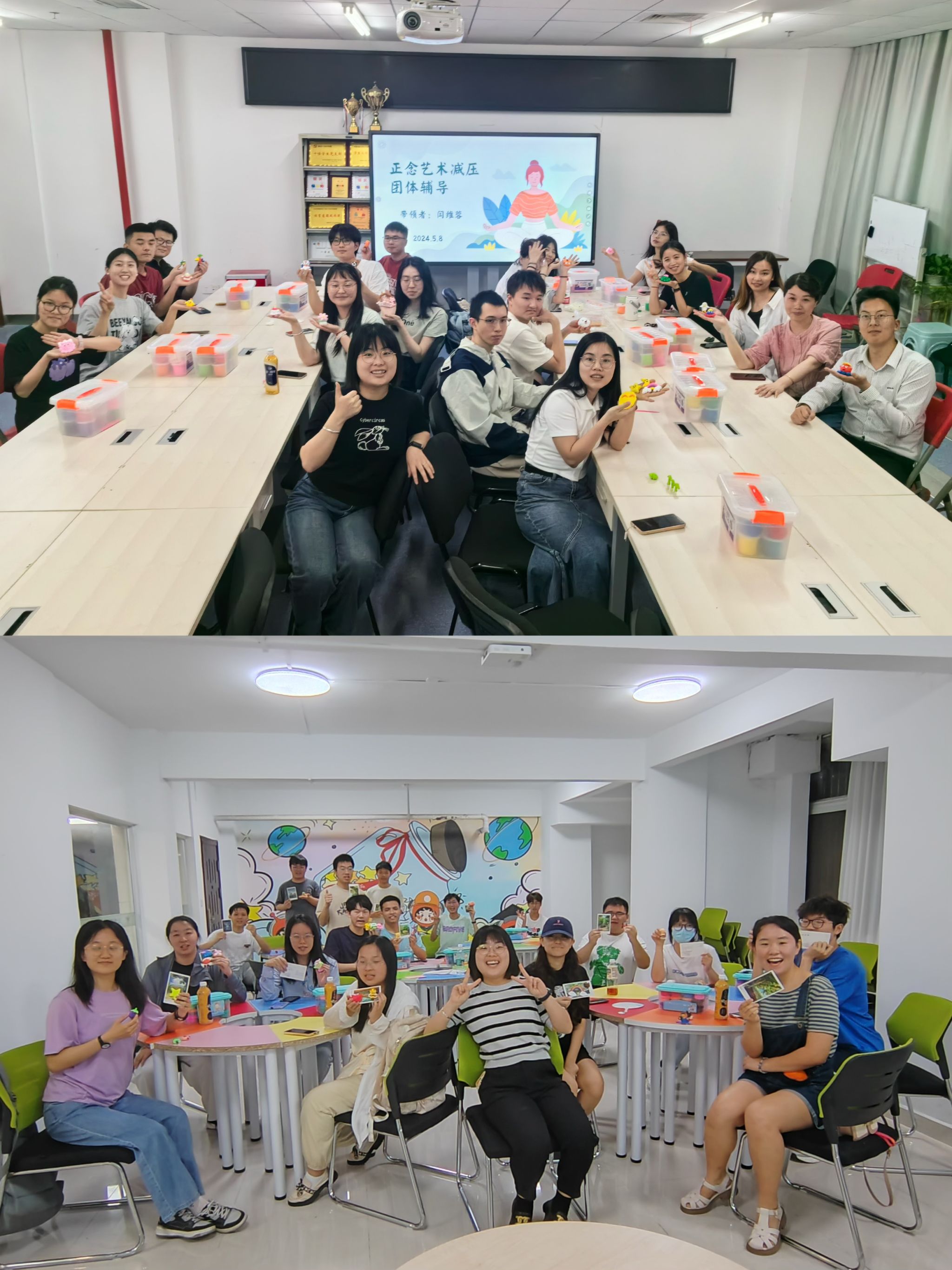 5月8日、5月23日晚上,公司心理健康辅导员闫维蓉分别在未来城和南望山校区开展了两场正念艺术减压团体辅导活动,通过团辅,同学们不仅学习到了正念的基本理念和实践技巧,更在粘土减压活动中缓解了工作学习中的压力与负面情绪。