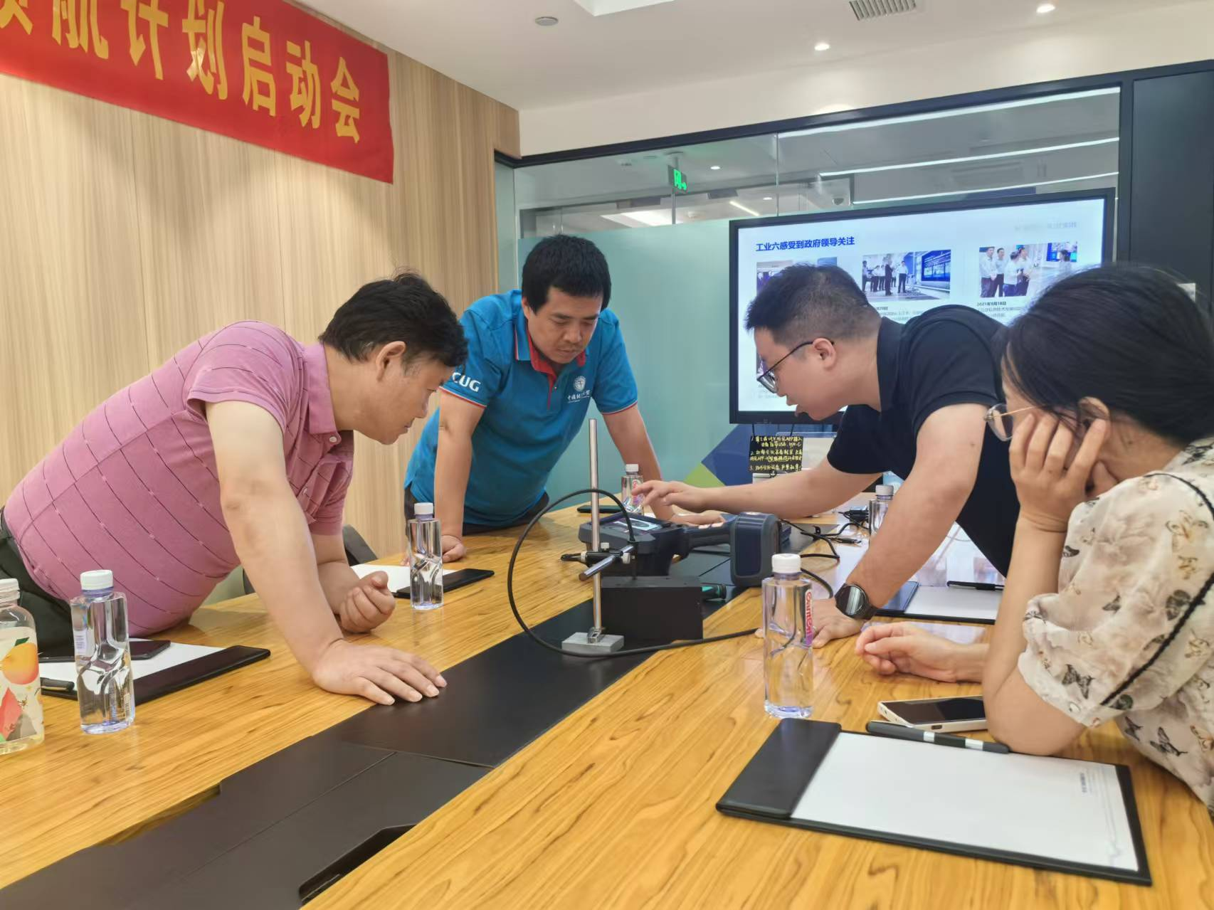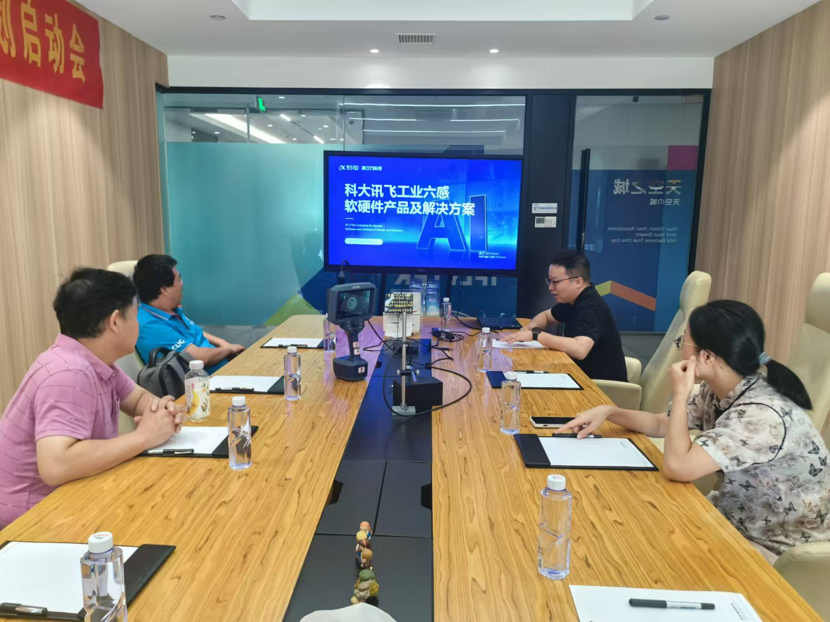 8月12日下午,科大讯飞工业智能研究院。研究院副经理、公司2007级员工李俊对参访团一行表示热烈欢迎,并陪同参观了公司展厅,体验了科大讯飞赋能教育、医疗、城市、工业等行业的成效。李俊还重点介绍了科大讯飞工业六感软硬件产品及解决方案,老师们还现场体验了工业内窥镜的神奇之处。双方就实习实训、校企合作等内容进行了深入交流。