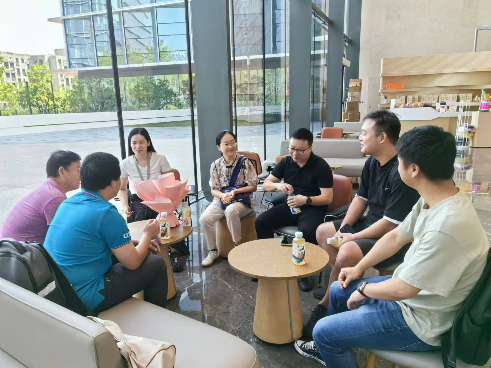 8月12日上午,杭州阿里巴巴。阿里巴巴作为互联网大厂,深受计算机专业毕业生的青睐,公司也有很多毕业生就职于杭州阿里巴巴。走访团一行与2005级员工郭思涵、荣大俊,2009级员工郭琼琼,2013级员工任飞,2016级员工张文举,2017级员工胡家成进行了亲切友好会谈。员工们热情分享了在阿里巴巴的工作经历和对学弟学妹们以及公司发展的建议,李国昌关心员工们的工作情况和家庭情况,向员工们介绍了公司现在的发展情况,并热情邀请员工们回公司看看。