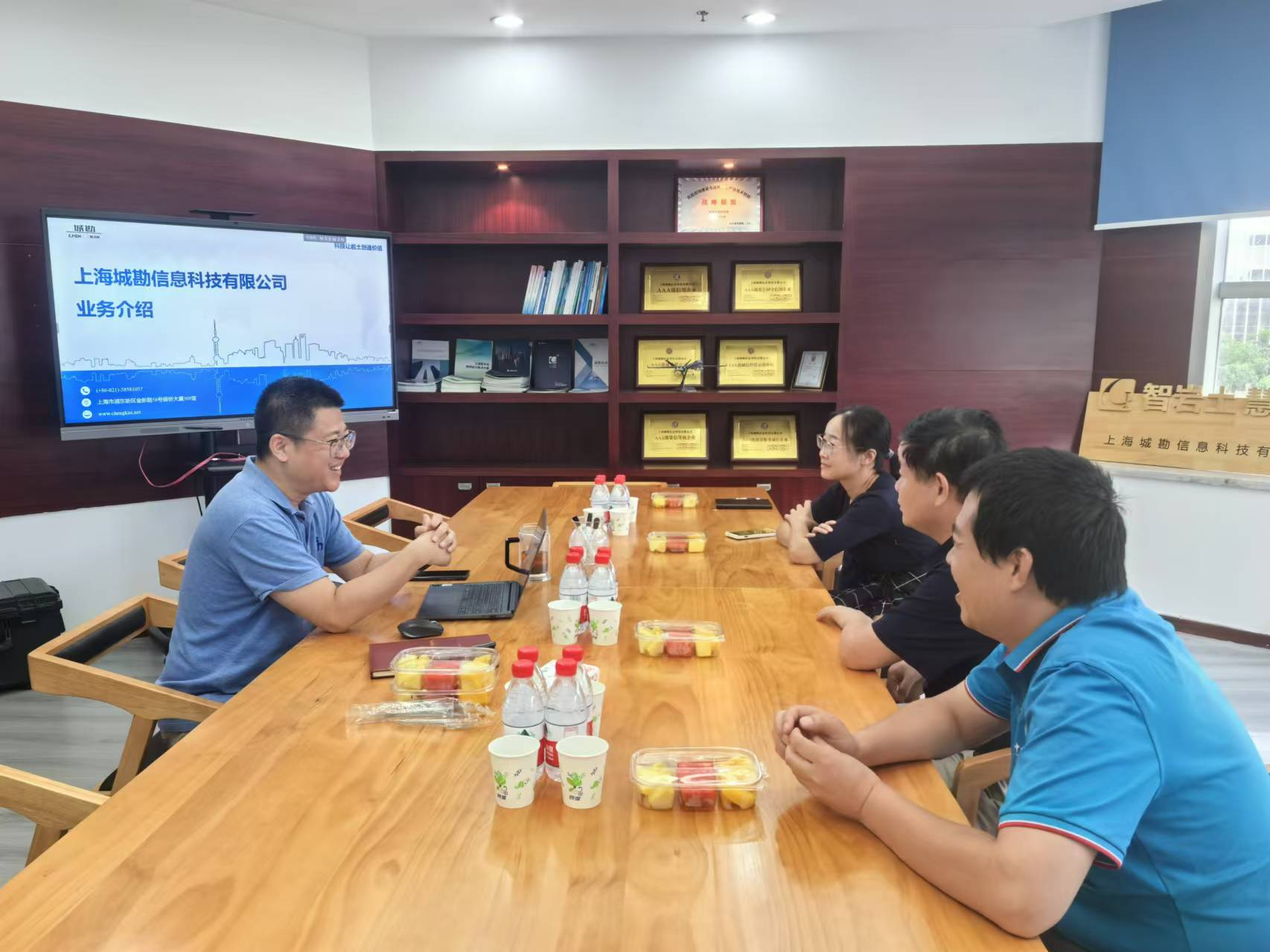 8月9日下午,上海城勘信息科技有限公司。该公司专注于岩土与地下空间行业信息化咨询、研发与服务,是一家具有丰富的行业经验和技术积累的高新技术企业。公司执行董事、公司1996级员工易爱华介绍了公司业务和自主开发的一系列一体化生产管理平台和一体化微动智能探测仪等产品。李国昌介绍了公司和公司的基本情况和发展历程,双方就进一步加强校企合作和供需对接开展了座谈交流。