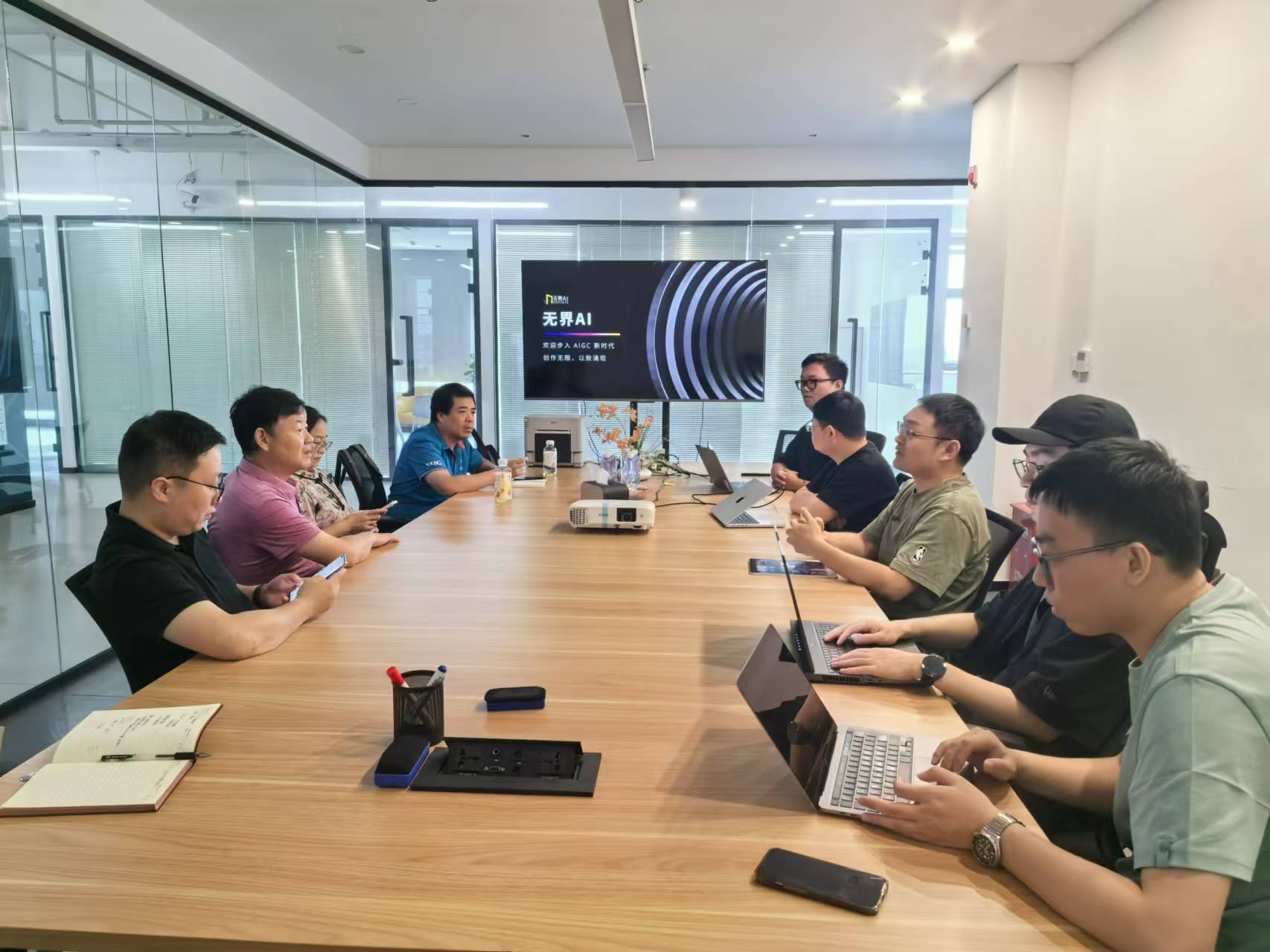 8月12日上午,杭州时戳信息科技有限公司。该公司成立于2014年,是国内领先的区块链信息与技术服务商,也是杭州市高新技术企业。公司董事长、学校2003级校友刘志鹏对走访团一行表示欢迎,并介绍了公司旗下品牌——无界AI的发展历程和应用情况。现场,老师们还体验了无界AI明星产品——无界魔镜,只要短短几秒钟,体验者就可以选择个性化的场景并生成精美的AI图像,现场还可以实时预览拍摄效果和快速打印。李国昌向员工介绍了地大和tyc122ccVIP的发展现状,双方就跨界创业、行业发展前景以及招聘需求等与企业进行了深入交流。