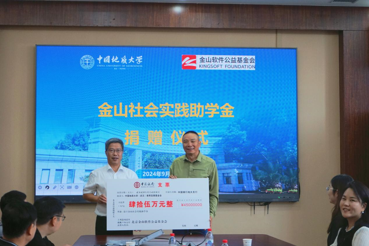 9月27日上午,北京金山软件公益基金会副理事长王全国率团来校座谈交流,并举行“金山社会实践助学金”捐赠仪式。公司副董事长王华,员工与社会合作处处长陈华荣、副处长袁江,员工就业指导处处长吴堂高,本科生院副经理李少杰,计算机公司党委书记李国昌、党委副书记林小艳,教职工代表武云、梁庆中、谭文博和受助员工代表,以及北京金山软件公益基金会项目负责人、北京金山软件有限公司及武汉金山软件有限公司有关负责人等出席。
