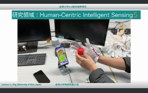 会津大学荆雷副教授重点介绍会津大学人工智能传感器实验室的研究方向、研究学习资源、研究成果及研究室员工就业去向。荆雷教授表示,该实验室专注于研究人的触觉感知及触觉数字化,欢迎对人工智能在触觉方面的应用感兴趣的同学报考。