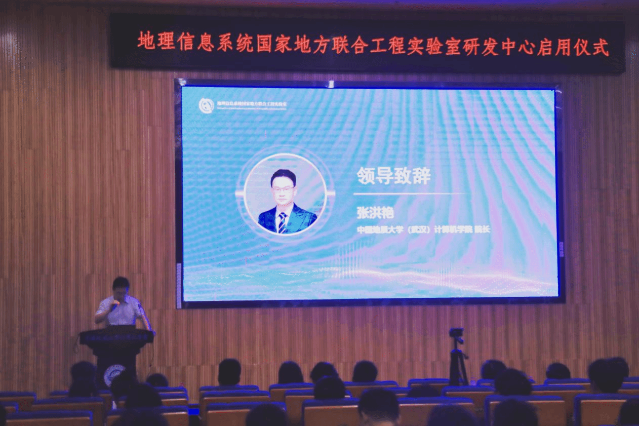 首先,公司经理张洪艳致辞。他表示国地联合实验室研发中心的启用,不仅是顺应国家科技创新趋势的重大举措,也能推动公司学科交叉融合、科研攻关、技术转化与人才培养进入新时期。公司将集中科研力量,与国地联合实验室围绕智能GIS、时空大数据分析、三维地学建模与可视化等方向开展科研攻关,力争在底层算法、软件平台和核心技术上实现创新突破;也将和国地联合实验室一起积极探索跨学科的人才培养新路径,共促成果转化,紧密对接国家重大需求与行业产业需要,共同推动科研成果的落地应用,加速人才培养、技术研发、转移和产业化,将先进的GIS技术与计算机科技成果切实转化为现实生产力。