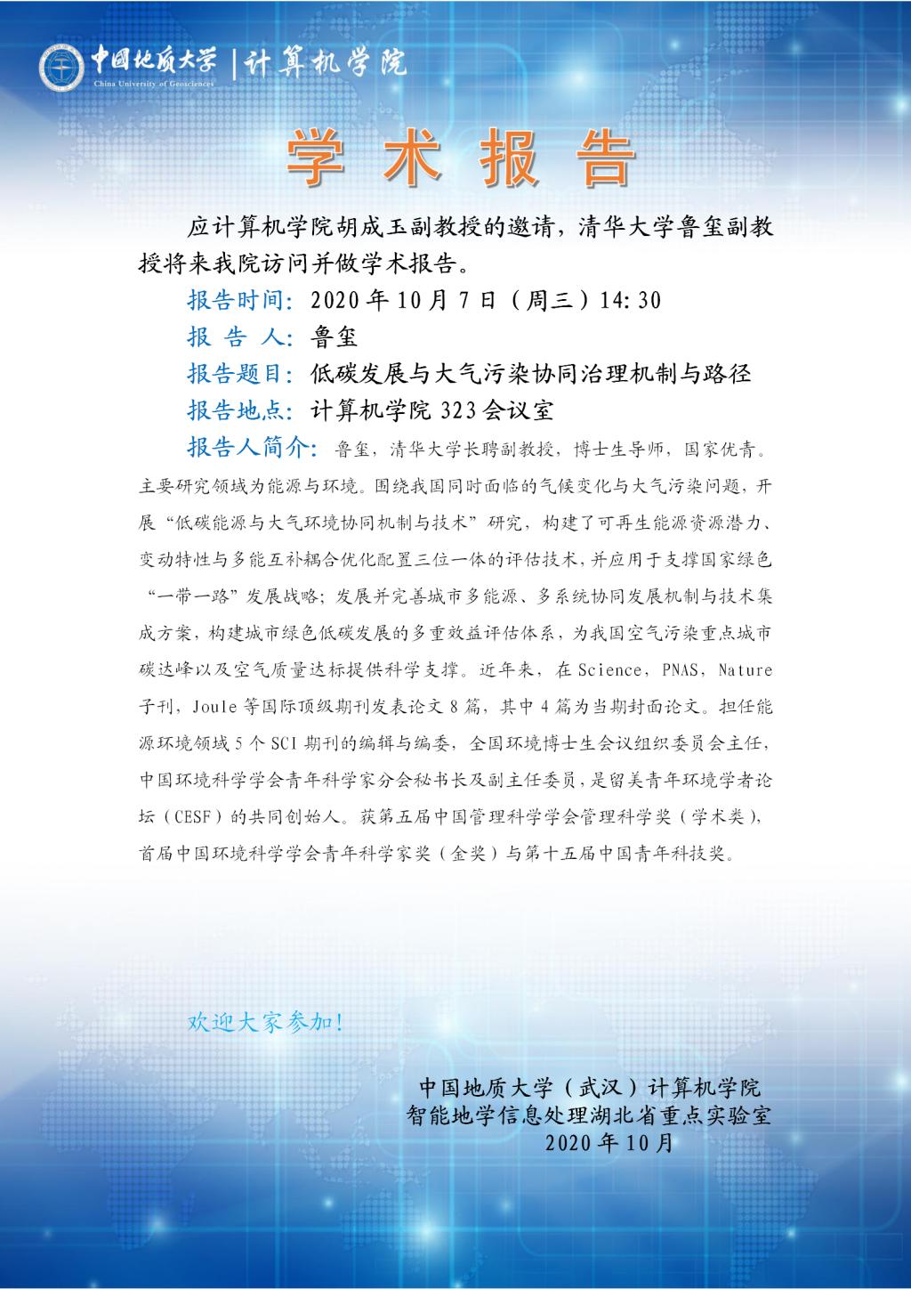 学术报告——国家优青清华大学鲁玺副教授:低碳发展与大气污染协同治理机制与路径