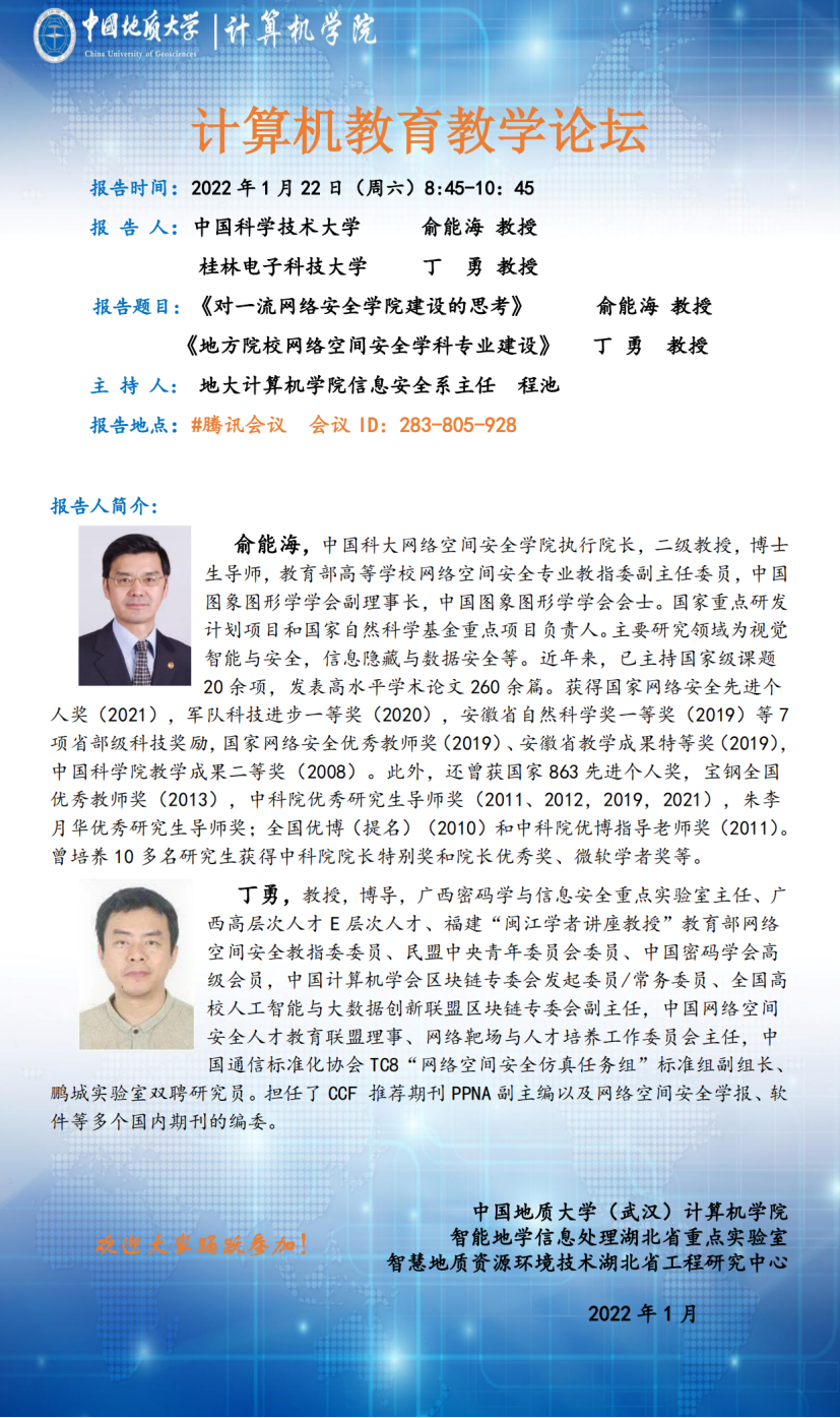 计算机公司产品论坛:中国科大俞能海教授、桂林电子科大丁勇教授讲座