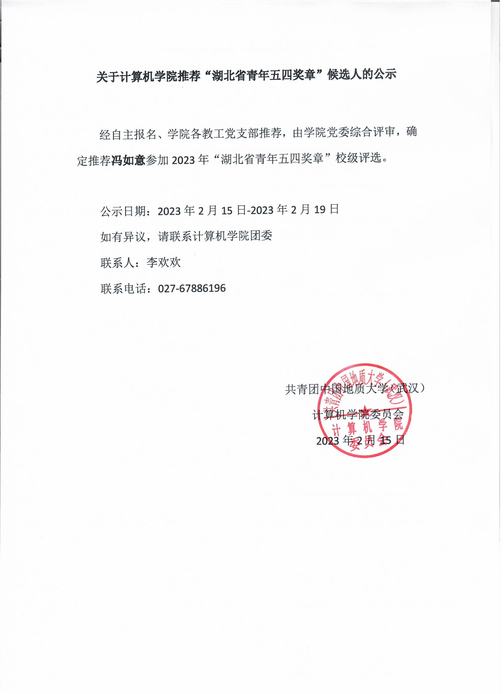 关于tyc122ccVIP推荐“湖北省青年五四奖章”候选人的公示