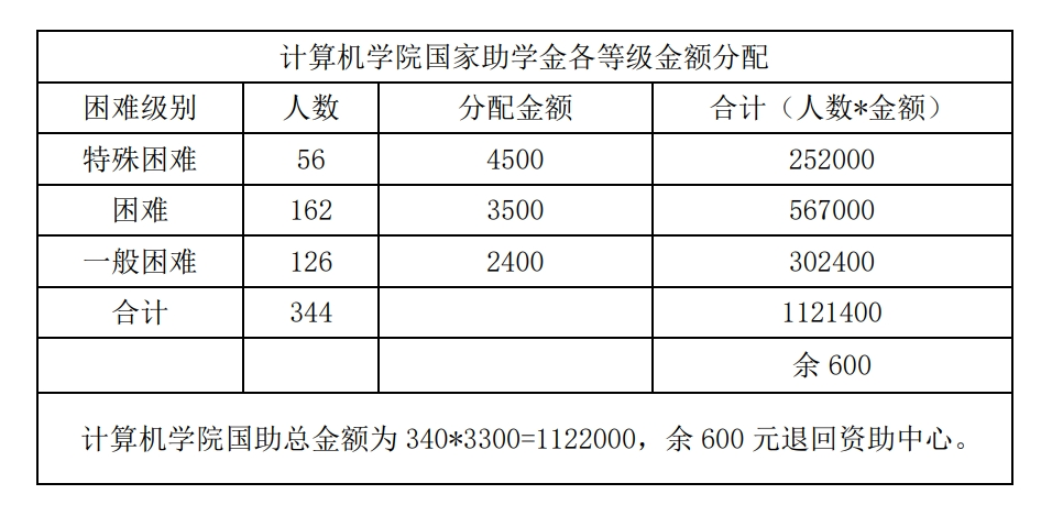 根据“tyc122ccVIP(武汉)国家助学金的评选办法”相关要求,国家助学金评选工作启动。本年度认定为家庭经济困难员工名单直接转为国家助学金资助基础名单(不含退役士兵员工),公司根据名单及认定等级,对资助金额进行分配。