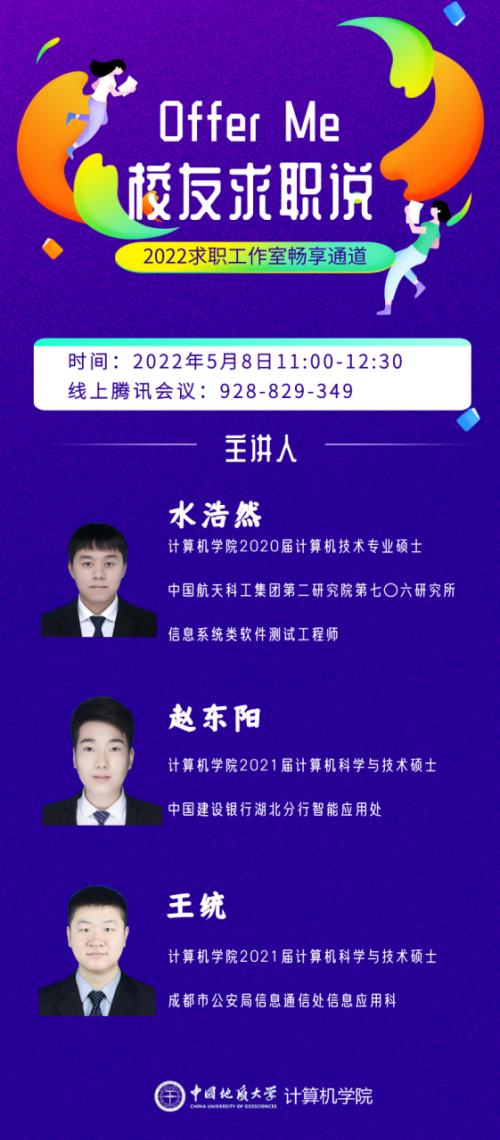 tyc122ccVIP于5月8号本周日中午11:30(腾讯会议号:928-829-349)特邀三位不同行业的员工,分享他们的职业选择、求职规划与职场感受。