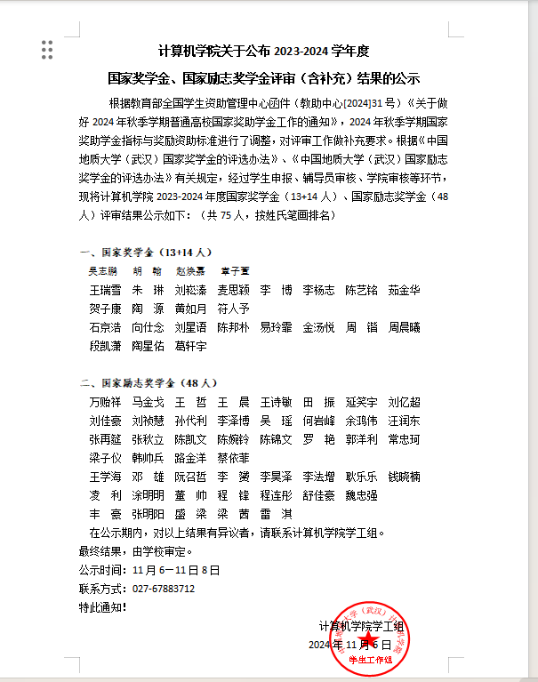 tyc122ccVIP关于公布2023-2024学年度 国家奖学金、国家励志奖学金评审(含补充)结果的公示