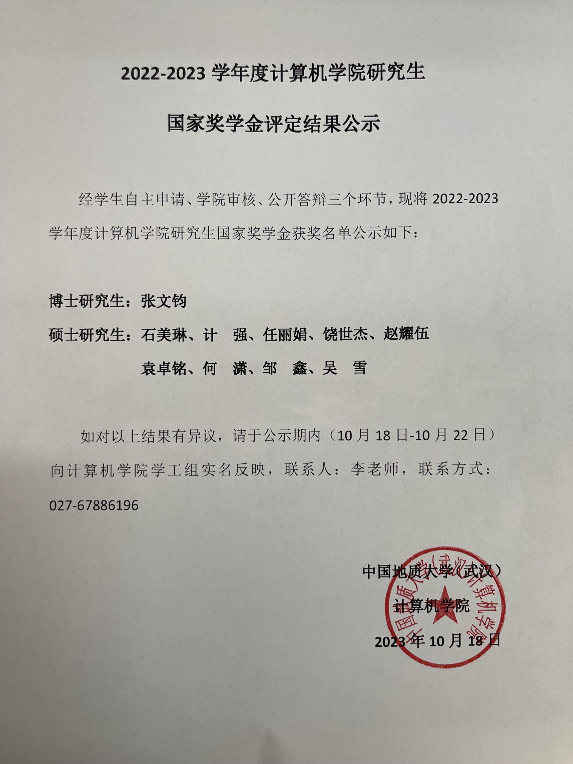 2022-2023学年度tyc122ccVIP研究生国家奖学金结果公示
