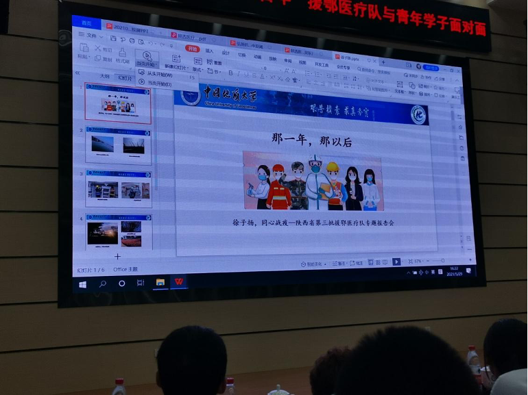 (通讯员:192192团支部、193192团支部)岱家山下夏伊始,正值人间五月天。2020年初,一场突如其来的新冠疫情席卷武汉,各省援鄂医疗队逆行出征,驰援武汉,未来城校区部分员工宿舍成为了外地援鄂医疗队驻地。如今,武汉重启,未来城校区早已春暖花开。陕西医疗队白衣战士们重返未来城校区,为地大学子讲述援鄂医疗队投身抗疫一线的动人故事,激励广大学子弘扬抗疫精神,献礼建党百年。