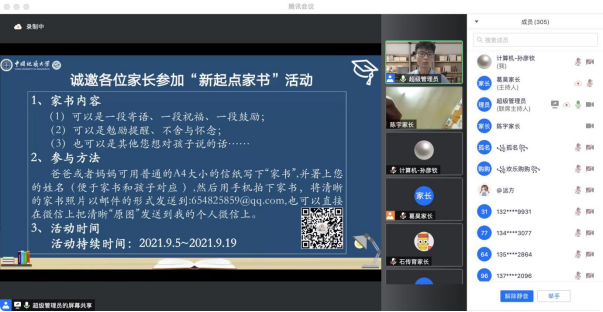 (通讯员:孙彦钦)为增进家长对公司工作的了解,进一步促进家校联动机制在育人体系中发挥有效作用,9月4日晚,公司通过腾讯会议的形式召开了2021级新生家长会。公司党委书记李国昌,党委副书记傅苑,副经理陈云亮,院团委书记李欢欢,学工组全体成员以及300余名新生家长参加此次会议,李欢欢担任主持。