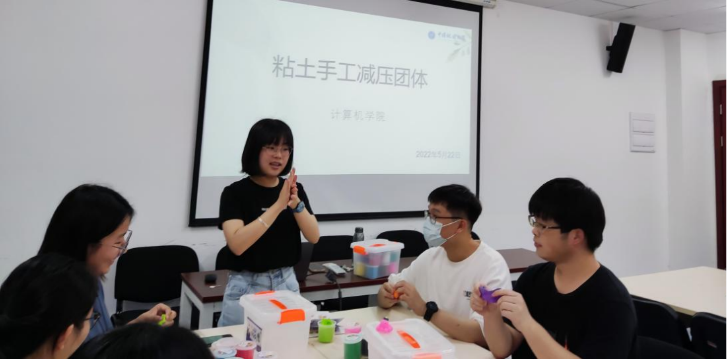 (通讯员:柴文岳、罗文香)在“5·25”全国老员工心理健康日到来之际,公司于5月22日在公司楼101活动室举办了手工粘土减压团体辅导活动,希望同学们能在活动中缓解压力、放松身心。公司心理健康辅导员闫维蓉主持活动,来自公司各年级的13名同学参与了本活动。