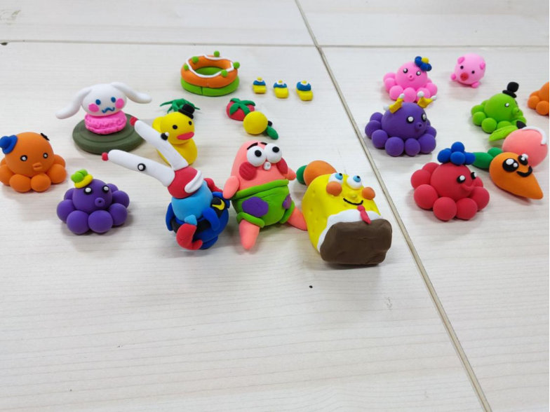 同学们在解锁了粘土创作的新技能后,纷纷开动脑筋、奇思妙想,开启了粘土DIY的快乐时光。