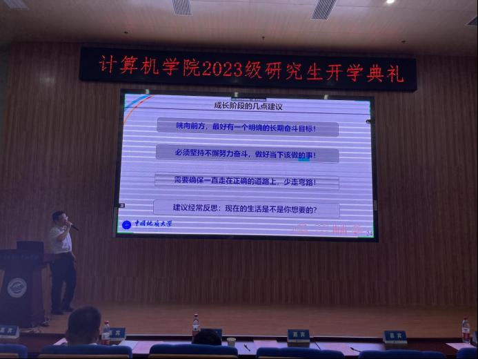 张经理首先肯定了同学们为考研付出的努力,对2023级研究生的到来表示热烈的欢迎。他以公司发展历史与人才培养成绩为切入点,向同学们展示了公司丰厚的底蕴,并从专业设置、团队队伍、科研平台与科研项目等方面介绍了公司近年来发展的概况。他谈到,国家在高新领域的巨大投入以及良好的政策指引,公司深厚的学术科研底蕴和一代代地大人的砥砺奋斗,为今天的在座的同学们奠定了良好的成长环境和优渥的发展平台,希望同学们秉承“艰苦朴素,求真务实”的校训精神,在地大tyc122ccVIP刻苦钻研,实现出属于自己的新突破,为国家前沿科技发展贡献自己的力量!