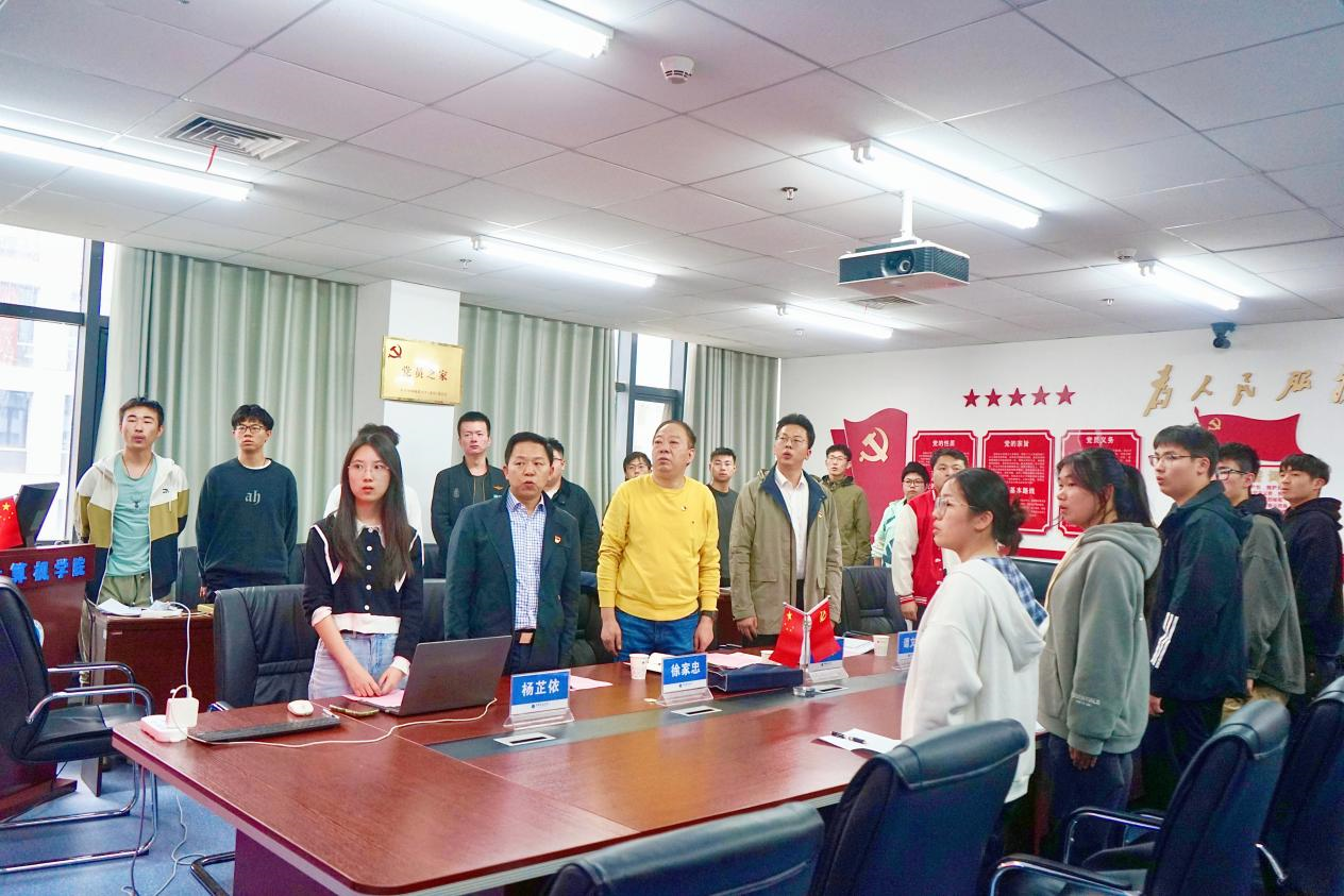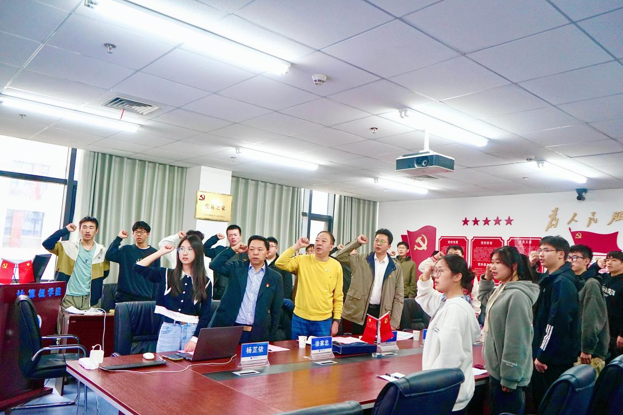 党建辅导员谭文博带领全体党员重温入党誓词。