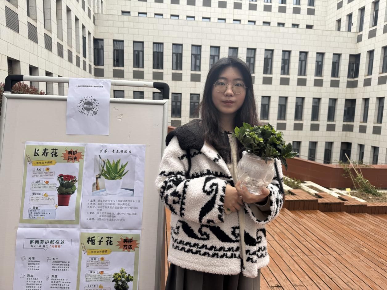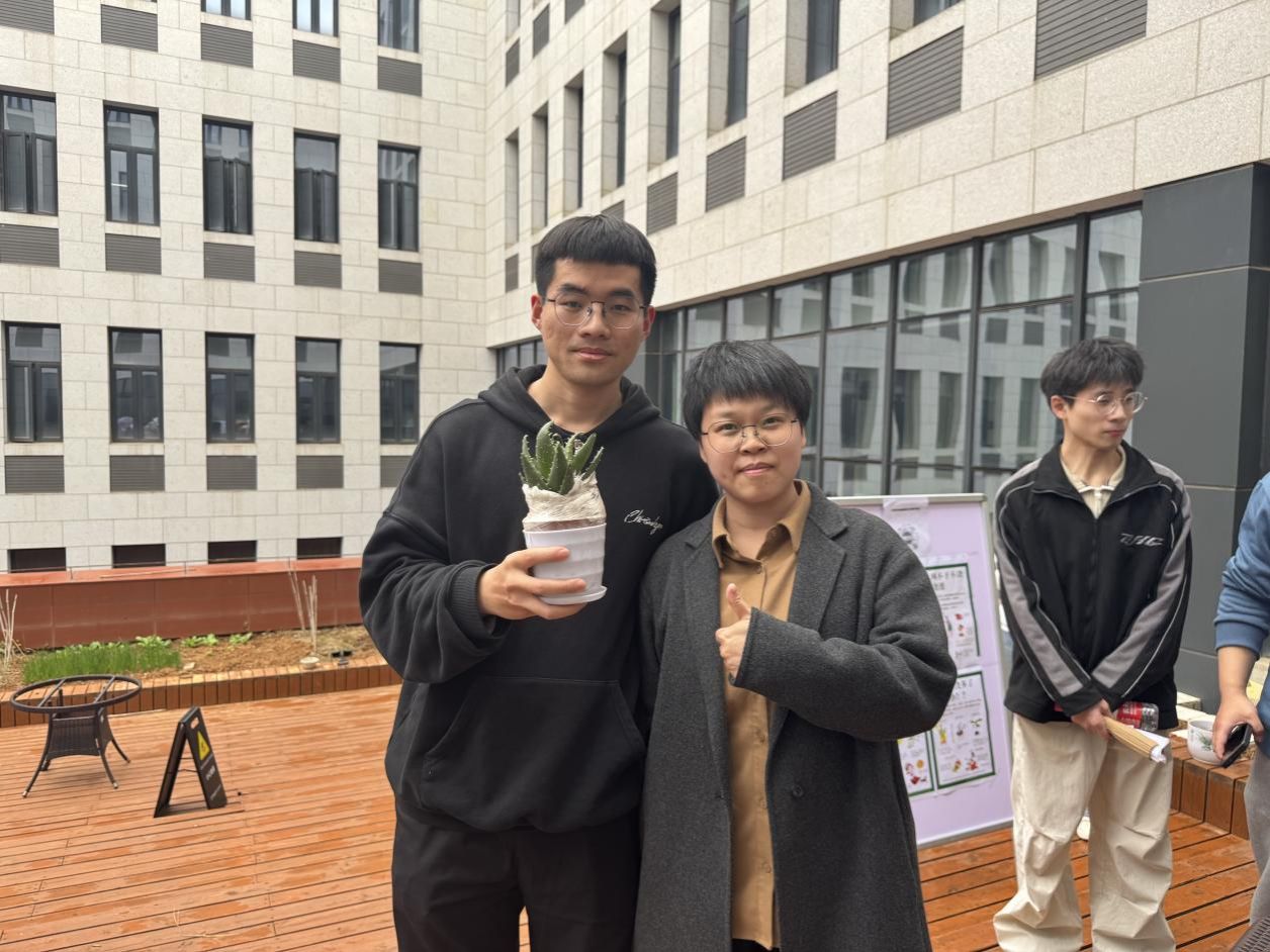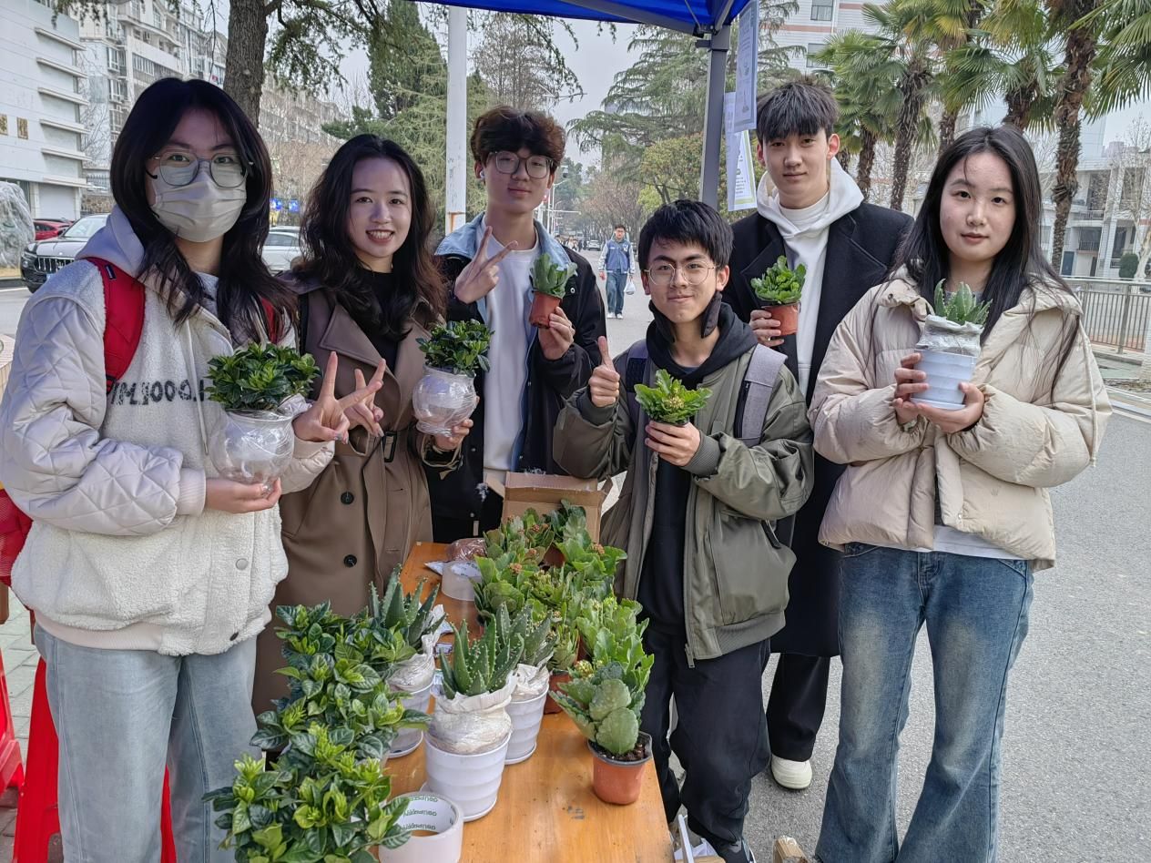 师生们积极参与趣味答题活动,现场气氛热烈。题目涵盖植物的种类、生长习性、生态价值等多个方面,既有简单的科普问题,也有专业知识的探讨,大家通过知识竞答,领取自己心仪的绿植,一株株翠绿欲滴,生机勃勃的绿植瞬间成为同学们的“新宠”。同学们手持绿植开心合影,定格收获的喜悦。