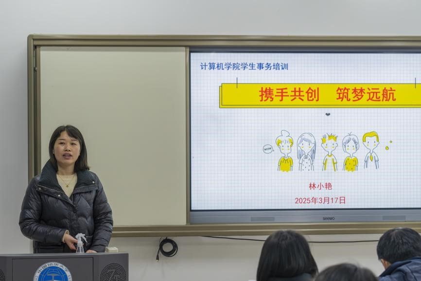 为全面落实共青团中央关于“青年马克思主义者培养工程”的相关要求,紧密结合tyc122ccVIP的学科特色和人才培养目标,培养一批有信念、有知识、心怀责任的马克思主义者和团学骨干,3月17日,tyc122ccVIP2024-2025学年“青年马克思主义者培养工程”强基班暨“计科领航”团学骨干培训班讲座第一期:《公司员工事务培训》在公教一105教室成功举行。本次讲座中,公司党委副书记林小艳担任主讲人,公司团委书记王太茂、研究生辅导员李欢欢、团委副书记闫维蓉、员工党建办主任谭文博出席本次讲座,公司兼辅、团委员工会、研究生会、党建办员工骨干及本科生、研究生各班班委参与学习。