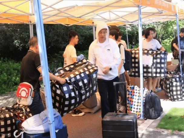 大巴驶入校园,在同学们即将入住的宿舍前,橙色的遮阳棚早已搭好,身穿蓝色马甲的志愿者们静候多时。多辆搬运车辆将员工行李送到宿舍楼下,老师和志愿者们积极帮助2024级计科学子们搬运行李,引导方向;宿管阿姨给大家发放钥匙,认真细致地登记信息;同学们团结协作,将一件件沉重的行李搬进新宿舍,开启一段全新的学习与生活旅程。