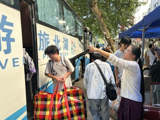 7月2日清晨,搬迁工作有序展开。公司党委书记李国昌、经理张洪艳分别在未来城校区和南望山校区坐镇指挥,公司党委副书记林小艳、部分班主任、院办及学工组老师们在南望山校区协助组织行李搬迁及发车,副经理陈占龙、其他班主任、院办及学工组老师们则在未来城校区时刻准备着接应大家。