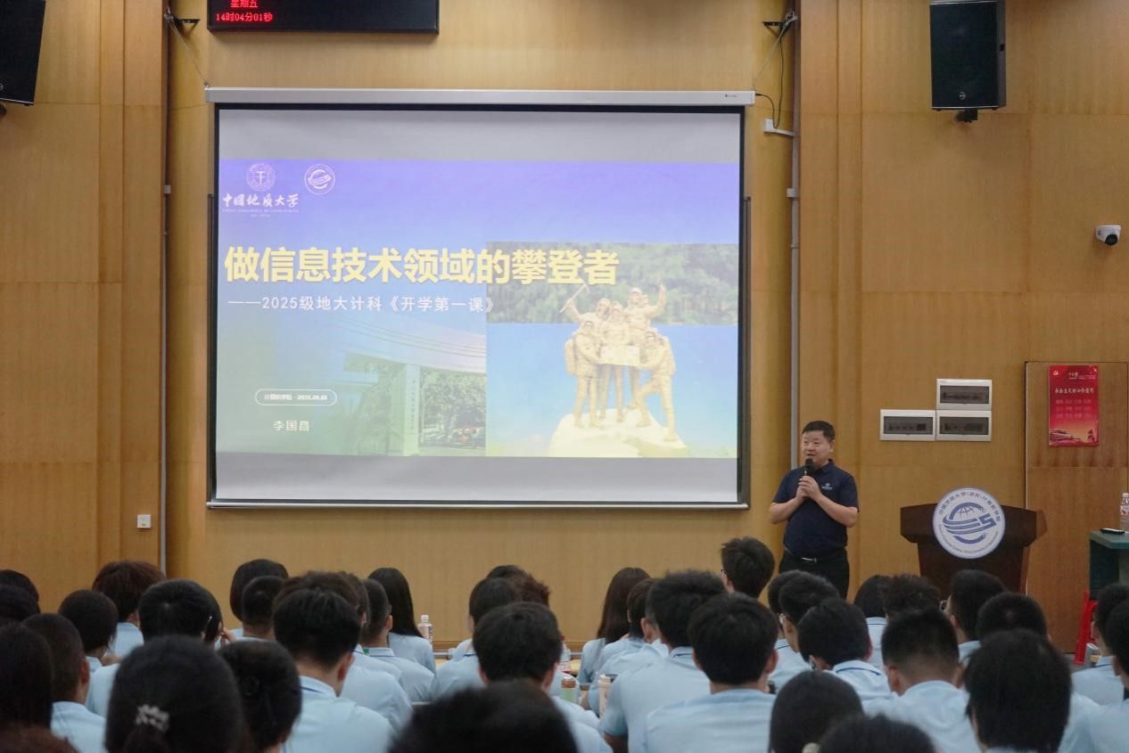 2025年9月6日下午14:00,公司党委书记李国昌在教三楼109教室为2025级本科新生讲授“开学第一课”——《做信息技术领域的攀登者》。本次课程不仅是一堂专业导引课,更是一次思想洗礼和精神动员。