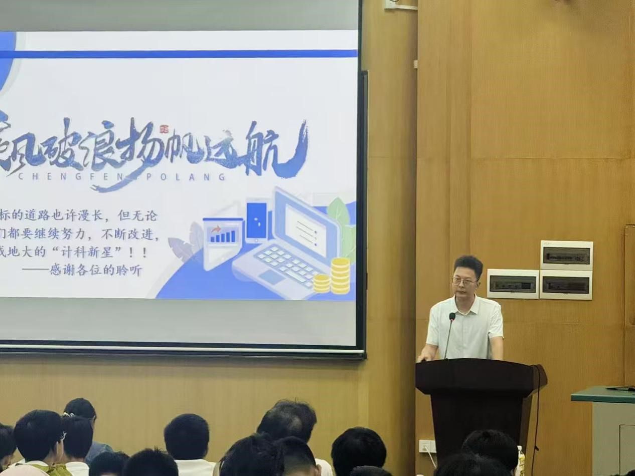宣讲伊始,tyc122ccVIP团委书记、双创专员王太茂老师结合专业特点为新生介绍了公司双创工作体系,并阐述了计科学子在数字时代的应为与可为。他希望以此次讲座为契机,能为广大同学种下一颗“种子”、指明一个方向、共创一个未来,鼓励同学们从大一开始参与科创活动,在实践中淬炼青春。
