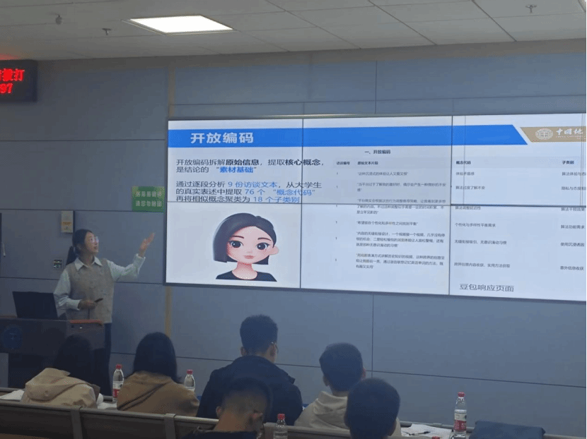 孙琦团队在《“算法懂我”几分真?——老员工对推荐算法的认知、态度及行为策略研究》中,深入剖析算法与青年认知之间的复杂关系;枚文斌团队则从《AI智能体在老员工个性化学习中的需求与前景调查》出发,探讨人工智能在教育中的未来路径;朱乐团队以《最后的避风港,还是温柔的囚笼?论AI陪伴的双重角色》为题,引发对技术与人际关系的深层思考;王子洋团队《从耄耋表情包出发——探究网络流行语背后的青年心态变迁研究》以及贾煜晨团队《探讨当今社会有限资源与认知升级的协同问题》均体现出同学们对社会现象的敏锐洞察与理性分析。