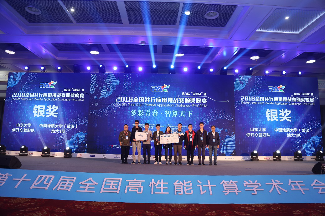 10月20日,国内两大超算赛事——第六届全国并行应用挑战赛(PAC2018)和第二届国产CPU并行应用挑战赛(CPC2018)在青岛国际会展中心落下帷幕。公司tyc122ccVIP高性能计算导师团队(王力哲、张锋、武进霞、董理君)联合指导的两支代表队,从全国四大赛区168支参赛队伍中突围进入16强决赛,与来自清华、中科大、中科院、上海交大、中山大学、山东大学、中国海洋大学、香港中文大学等单位的决赛队伍同场竞技,最终地大之光超算1队(雷辛亚、郭睿欣、马永耀、薛尔康)在PAC优化赛道中以季军的成绩获得银奖和1万元奖金;地大之光超算2队(李瑞、张晓涵、董宇、姜家伟)以全国16强的成绩分获CPC和PAC中南赛区一等奖和4千元奖金。