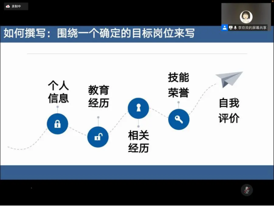 李欢欢从“制作简历的目的和意义、计算机专业简历制作要点和关于就业与读研的选择”三个方面进行讲解,层层递进。在展开前,李欢欢介绍了目前求职环境以及用人单位的需求,重点讲解了简历的制作过程和要点。通过借鉴与互联网公司HR的交流反馈,同学们能够更好地理解投递简历时应该注意哪些事项。最后在分析就业以及考研形势的基础上,李欢欢鼓励同学们根据自身真实想法和能力进行选择。