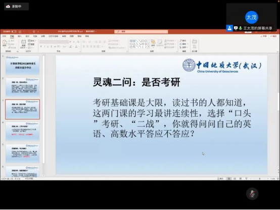 会议结尾,王太茂总结并向各位受邀嘉宾表示感谢,同时针对2018级当下求职、考研等情况提出若干问题,请同学们结合个人情况进行思考,鼓励同学们审视自身,坚定选择,勇于行动。
