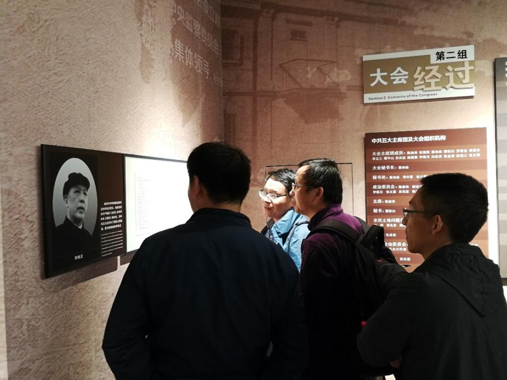 在会址纪念馆内,党员同志们认真观览了馆藏史料、历史图片及五大会议历史文物,全方位地学习了中共五大召开的历史背景、主要参会代表的革命事迹、会议历程和会议的现实影响。