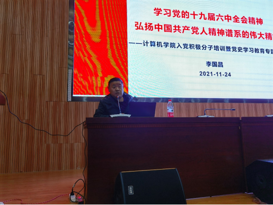 (通讯员:杨书睿)为学习贯彻党的十九届六中全会和习近平总书记七一重要讲话精神,深入推动党史学习教育,11月24日中午,公司党委书记李国昌为tyc122ccVIP第29期入党积极分子主讲《学习党的十九届六中全会精神,弘扬中国共产党人精神谱系的伟大精神》专题党课。