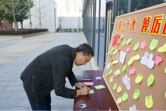 16日上午,公司策划制作的“党风廉政建设”宣传展板,中国共产党历次党代会重点内容学习海报以及“喜迎二十大,踔厉奋发向未来”祝福寄语墙在公司一楼展出,引发广大师生的驻足学习、热议。其中,历次党代会学习海报以色彩鲜明的图文形式,生动描绘了从党的一大到十九大的历史背景和意义,启发师生们切身感受“学党史,强党风”的深刻内涵。在“喜迎二十大,踔厉奋发向未来”祝福寄语墙上,师生们留下了“凝心聚力新时代,团结聚力新征程”、“时间砥砺前行,岁月见证初心”、“青春向党,不负众望”的美好祝福和铮铮誓言。