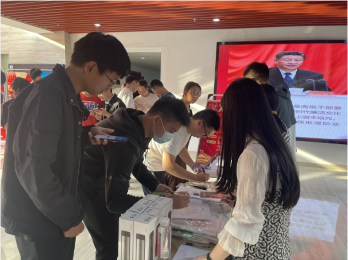 集团“样板党支部”tyc122ccVIP博士生党组织部牵头负责的“党风廉政知识竞答”活动,通过现场扫码扫码答题赢取公司文创产品的形式,引导广大师生学习党风廉政建设理论知识、了解党风廉政建设的重要意义,增强师生爱院荣院教育。活动吸引了近300名师生参与互动答题,共有23名师生获得满分成绩。