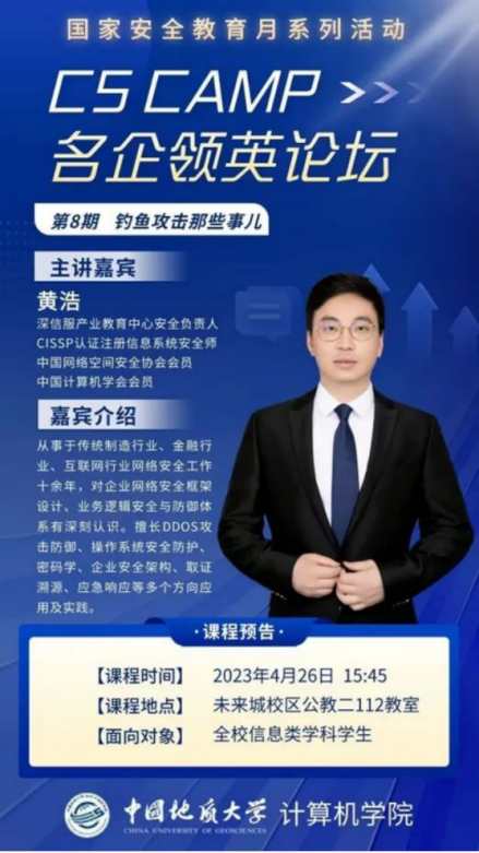 公司还于4-5月集中举办国家安全教育月系列活动,重点围绕网络空间信息安全,面向师生开展了专题讲座、专题党课、主题团日、专题展览和研究生实验室环境建设评估等活动,将“没有网络安全就没有国家”的国家安全观厚植计科师生心中。